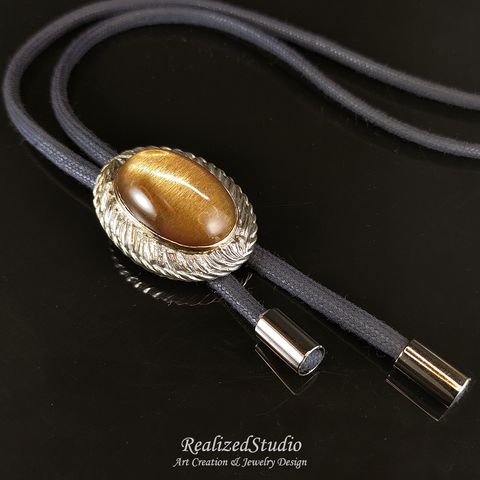 浮雕裝飾風格保羅領結/皮繩領帶 - 星光太陽石.S925純銀